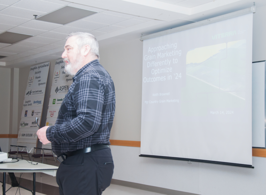 That was the message delivered by Keith Brownell, the manager of Country Grain Marketing with Viterra, at Dauphin Agricultural Society’s Farm Outlook 2024, Mar. 14, at the Parkland Recreation Complex in Dauphin.