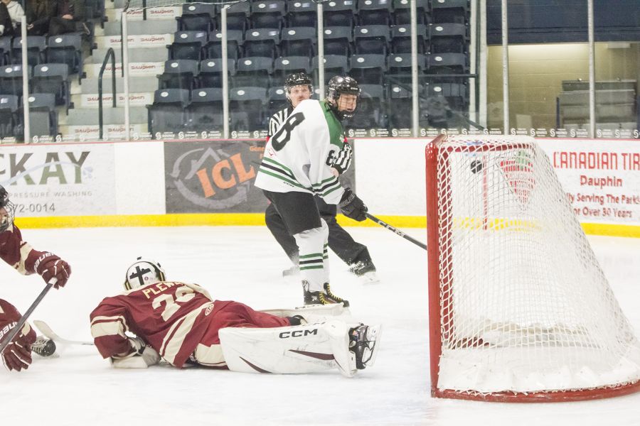 After scoring a 6-2 win over the Roblin/Grandview/Gilbert Plains Raiders, Tuesday in Dauphin, Hayden Shtykalo scored both goals in a 2-1 overtime victory over the Sandy Bay Badgers, Wednesday in Sandy Bay.