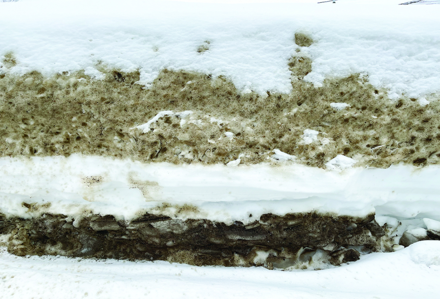 For the last few months if you looked at the snowbanks that had been cut away from the curb you could see the various layers of winter telling the story of fresh snowfalls mixed with salted and sanded roads, plowed up to create a timeline of winter.