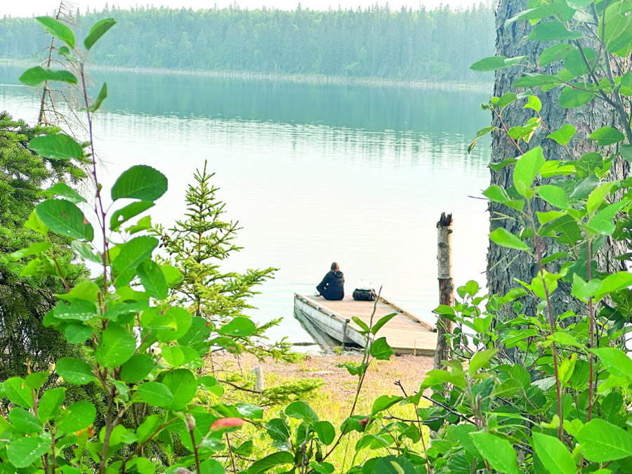 Summer is the time to take advantage of the many beautiful lakes the Swan River Valley - swimming, boating, fishing or just enjoying the beach. Here, a lone fisherman sits on the dock at East Blue Lake, looking to reel in a catch.