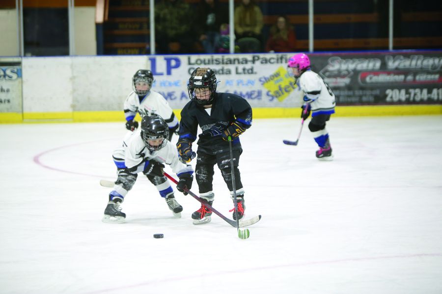 The Swan Valley U9 Colts and Broncos hosted games against the Ste. Rose U9 Royals this past Saturday (Dec. 13). Both local squads were able to secure victories on home ice in dominant fashion. Burton Hanson works his way through a Royals defender...