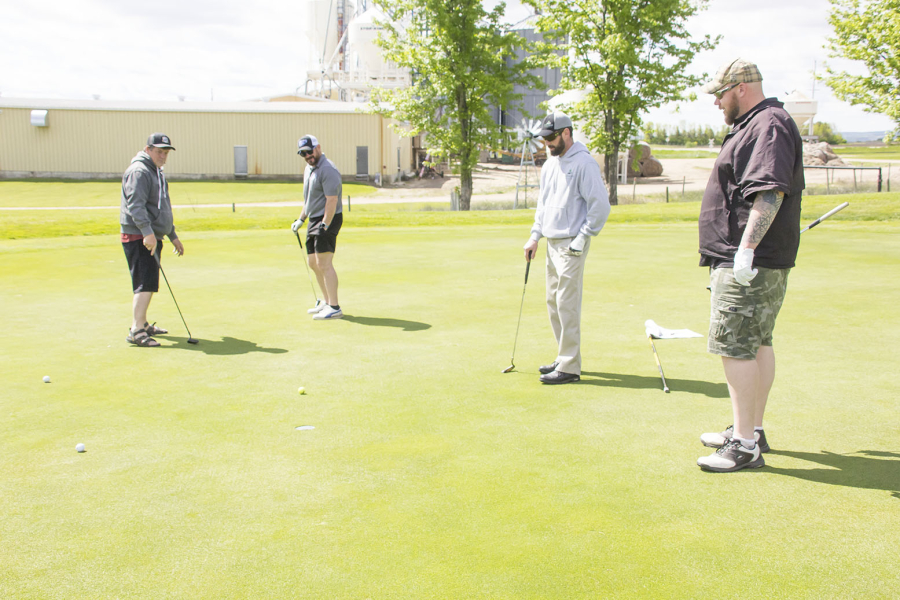 Kent Miner sank this putt on no. 12 during the soldout Dauphin Kings Par 3 Extravaganza, Saturday, at the Gilbert Plains Country Club. The team of Mark Odut, Chris Todoruk, Mike Csversko and Seth Gares won the tournament, shooting a 48. Jon Yerama, Brendan Green, Stephen Chychota and Josh MacQuarrie were second on a countback over Rob Bouchard, Anthony Wiens, Ray Karlson and Brad Carefoot after both teams finished with a 50. Next year’s tournament will take place at the Dauphin Lake Golf Club.