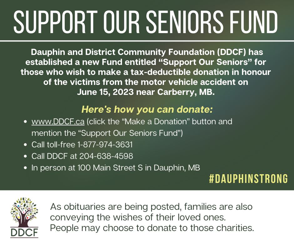 A new fund in support of seniors has been established by the Dauphin and District Community Foundation (DDCF) to handle donations coming in the wake of the June 15 crash which killed 16 members of the area community.