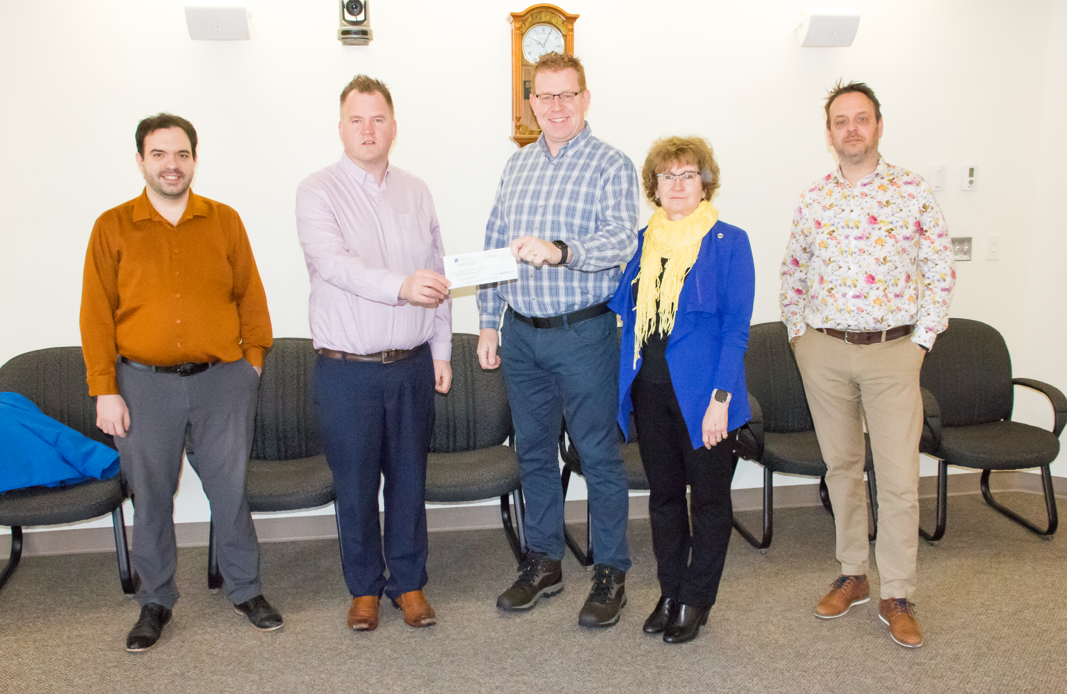 (From left, DDCF board member Justin Tokarchuk, Jason Beyette presenting a cheque to DDCF board member Darren Eddie, DDCF executive director Kit Daley and DDCF board member Martijn van Luijn.)