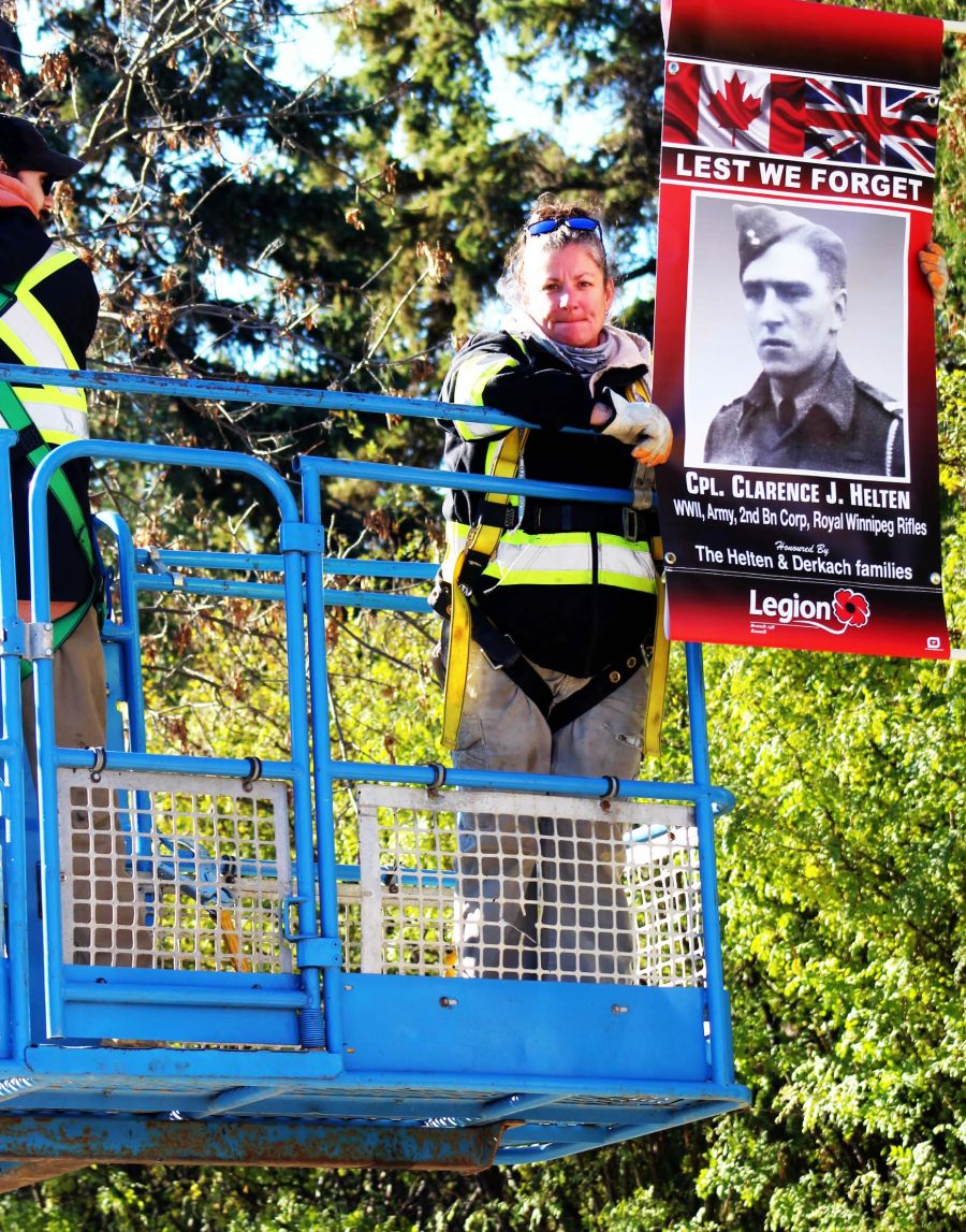 As an extension of the programs of the last two years, the number of banners have grown substantially over last year where families of veterans in Russell had started with 19 banners along with 21 banners gracing the streets of Binscarth. This year, there have been 15 more banners added in Binscarth and a further 25 banners in Russell, meaning that streets like Alexandria are now being utilized.