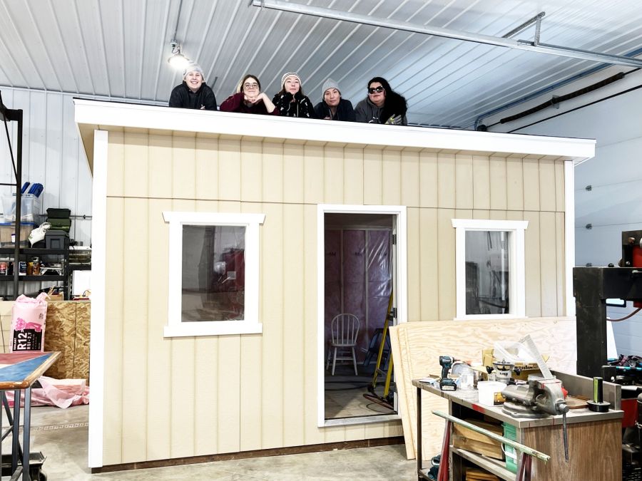 The five local women enrolled in The Youth Employment and Skills Strategy (YESS) program - (seen on the roof of the building above) left- right: Kaitlyn Hatt, Chantelle Wishira, Isabelle Wishira, Lisa Kitchemonia and Jaz Brazeau, spent the last three weeks of their 17-week program applying the practical construction and trade skills they’ve learned.