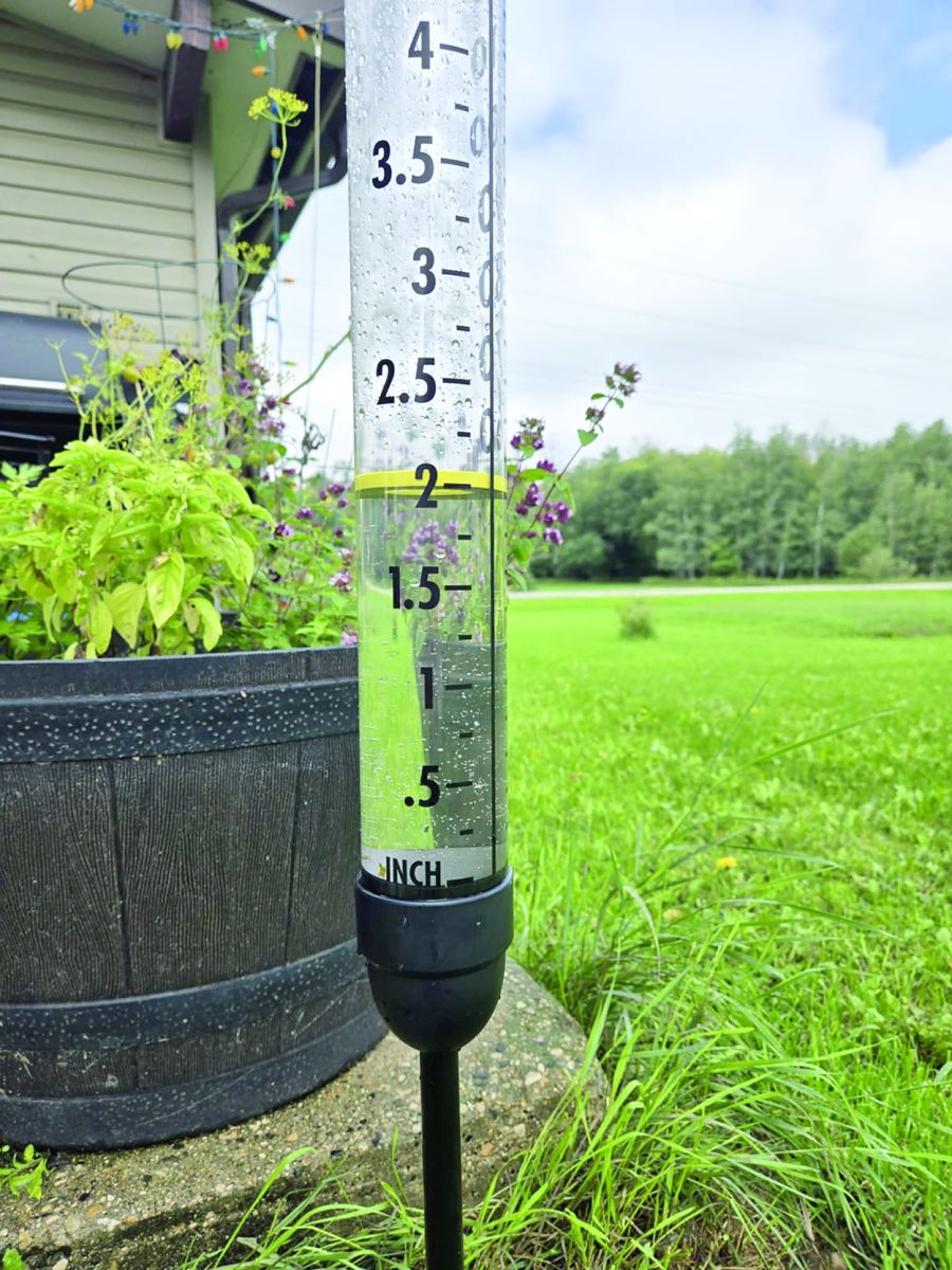 After a dry summer with very little precipitation, the taps were turned on during the last couple of weeks, with 71.9 mm of rain being reported in Swan River between Aug. 11-17, or 132.3 mm total if extended to Aug. 6. Only two days in that time period experienced no precipitation at all. Pictured here, a rain gauge in the Municipality of Swan Valley West shows the local precipitation over an approximately 36 hour period last weekend...