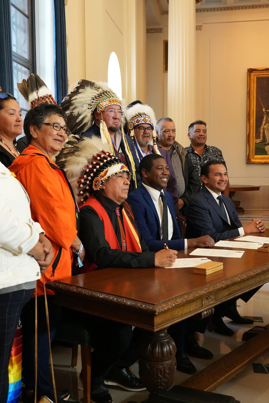 “The court system is not our court system. Our court system is the pipe we used to open the signing of this agreement. That sets truth and reconciliation. It took a while for this pipe to start smoking because we need that within ourselves, for it sees right through us. We need to do that more often because it doesn’t happen today, but it’s supposed to happen tomorrow and the next day after that. So, when working together, let’s achieve things that we need to do.”