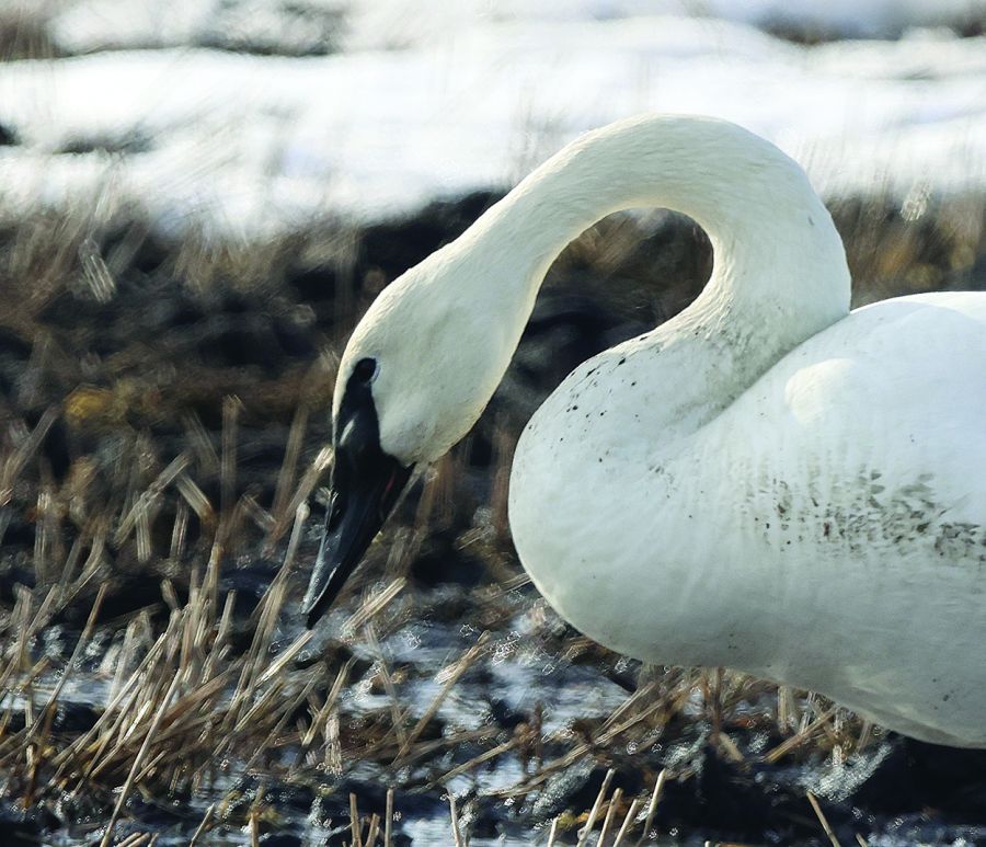 A Tundra Swan was captured visiting a pond area in the Little Woody District.