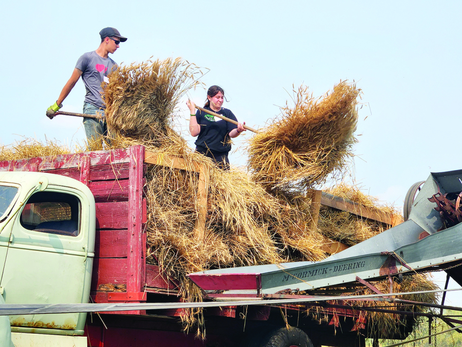 The Swan Valley Historical Museum held their 2023 Harvest Festival this past Sunday (Aug. 27), with a great showing of support from visitors. Here, William Piwish (left) and Rae-lene Piwish toss sheaves of wheat into the old threshing machine...