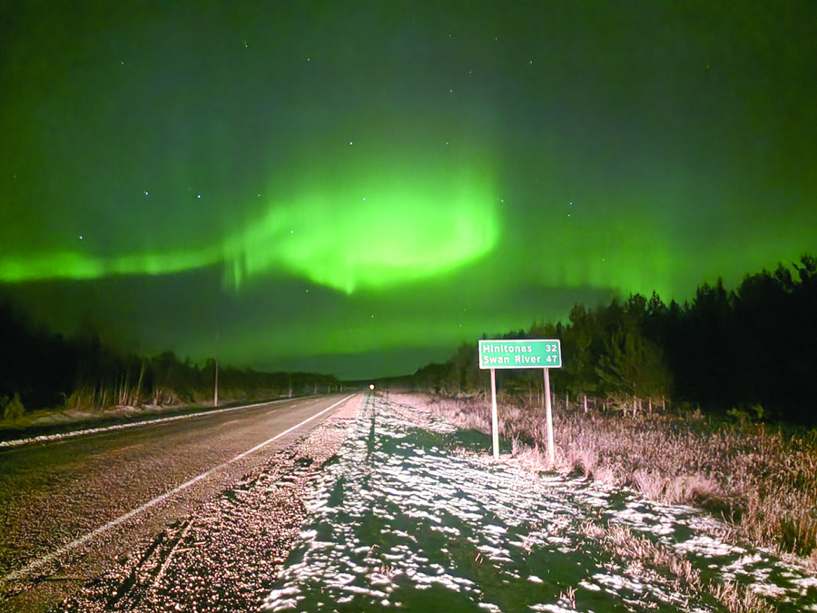 Darker nights and clearer skies in this season allows for nature’s late-night light shows to present themselves. On Sunday night (Nov. 12), a show of aurora borealis – or northern lights – danced in the sky as seen on Hwy. 10 north of Cowan...